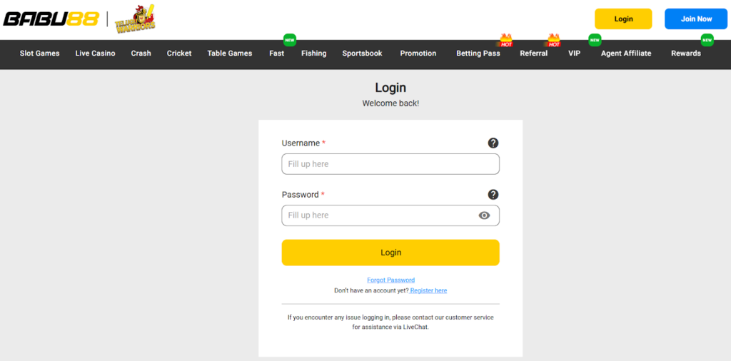 If you cannot remember your Babu88 login password, you can reset it in the login form. Click on the appropriate hyperlink, fill in the fields, and create a new password.